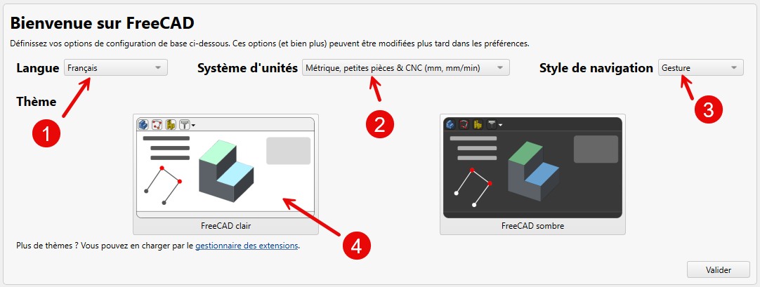 tuto1.FCStddans FreeCAD à l'aide de la commandeFichier → Ouvrirou du bouton;