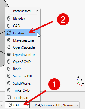 Pour naviguer visuellement dans la vue 3D et interagir avec les objets affichés, FreeCAD propose plusieurs styles ou modes de navigation à la souris. Le style par défaut est le style CAD.